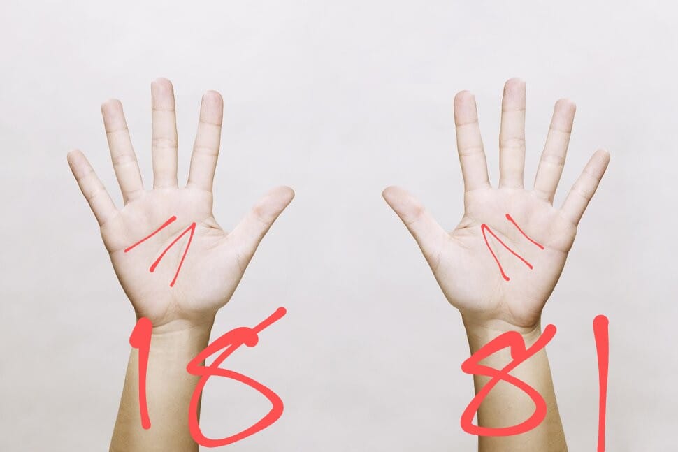 [1.74] In your palms, you'll notice certain lines resembling an inverted V and I. In Arabic, I is represented as 1, while an inverted V symbolizes 8. The left hand palm corresponds to the number 81, and the right hand palm to 18. These numbers may seem arbitrary, but they hold significance in relation to the Creator.
